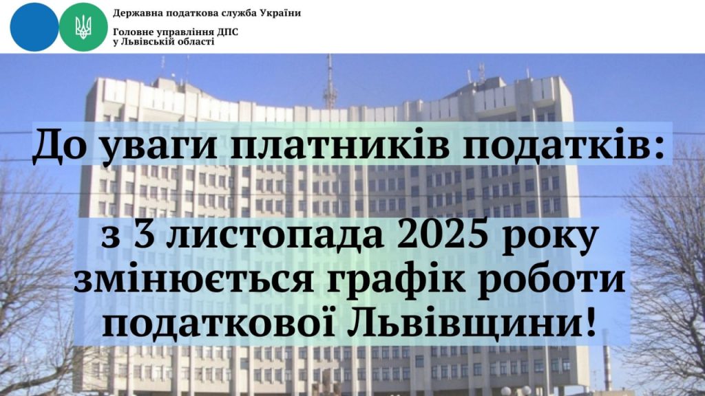 До уваги платників податків: з 3 листопада 2025 року змінюється графік роботи податкової Львівщини!