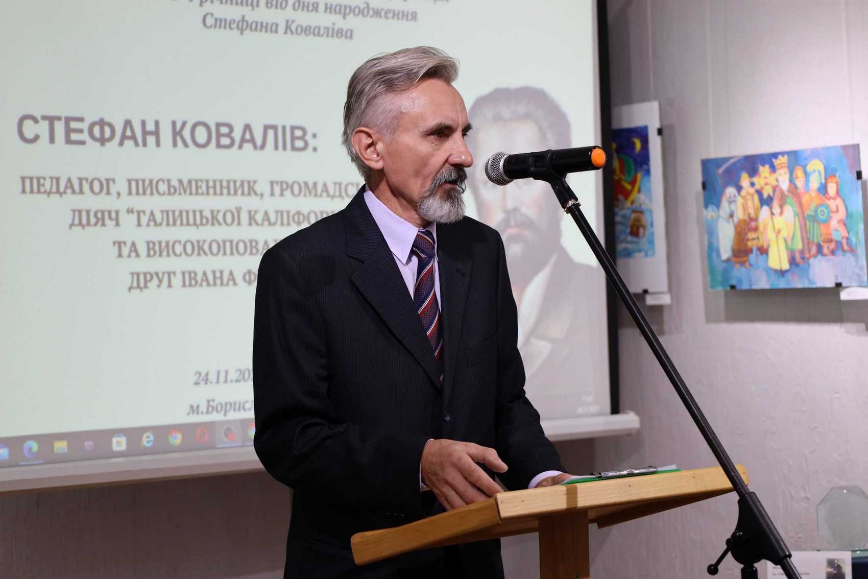 Всіх учасників конференції привітав міський голова Ігор Яворський: “Радий вітати вас у славетному місті, в якому все починалося з нафти. Та не тільки нафтою славився на весь світ наш Борислав. А й безперечно визначними постатями, які проживали у нашому місті. Цього року Борислав вшановує 175-річчя народження письменника, педагога, громадського діяча Стефана Коваліва. Народився він 1848 року у с. Брониці, та своє життя тісно повʼязав з нашим містом. Тут очолив одну з найбільших тогочасних шкіл Галичини й здобув визнання літератора. Загалом у спадщині письменника близько 120 оповідань і нарисів, 40 педагогічних статей і десятки «Дописів з Борислава». Пишаємось і вшановуємо памʼять про нашого видатного земляка – достойного сина нашого народу, який правдивим пером закарбував в історії долю Борислава як невіддільну складову генетичної памʼяті українства”.