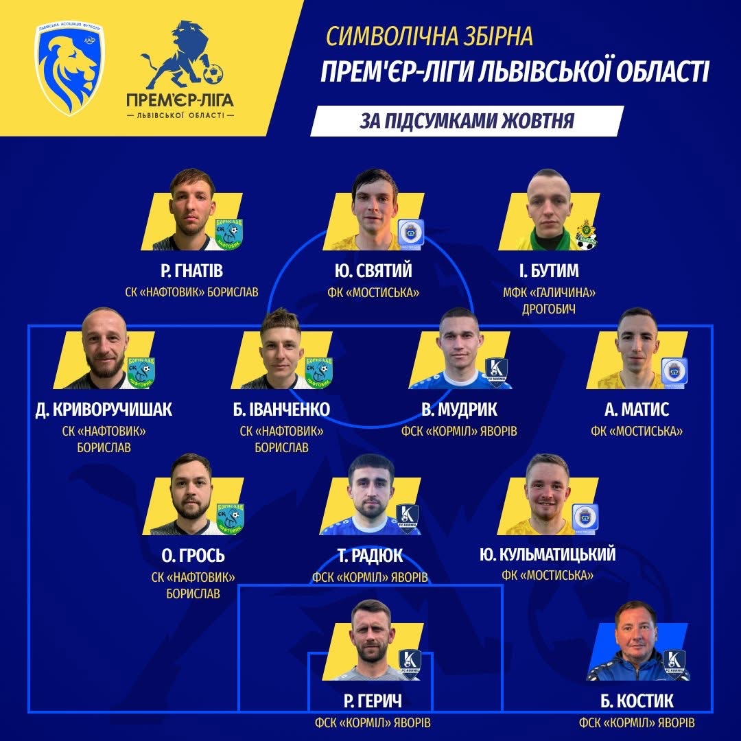 Комітет проведення змагань Львівської асоціації футболу підбив підсумки жовтня, сформувавши символічну збірну Прем’єр-ліги Львівщини. Приємно відзначити, що бориславський СК «Нафтовик» має потужне представництво у переліку найкращих.