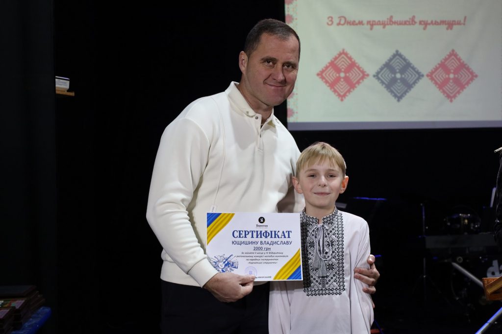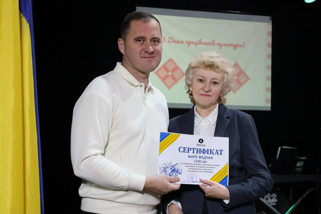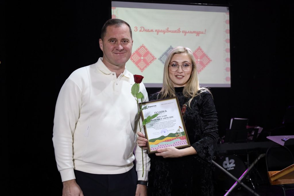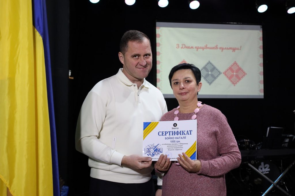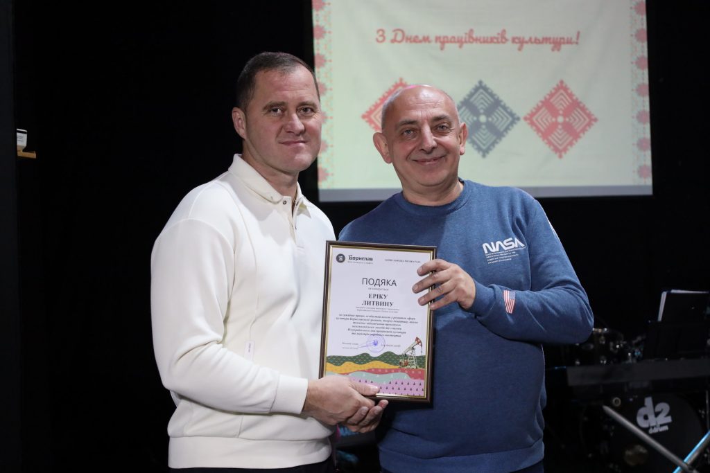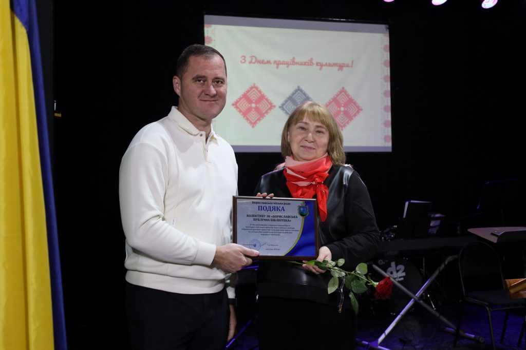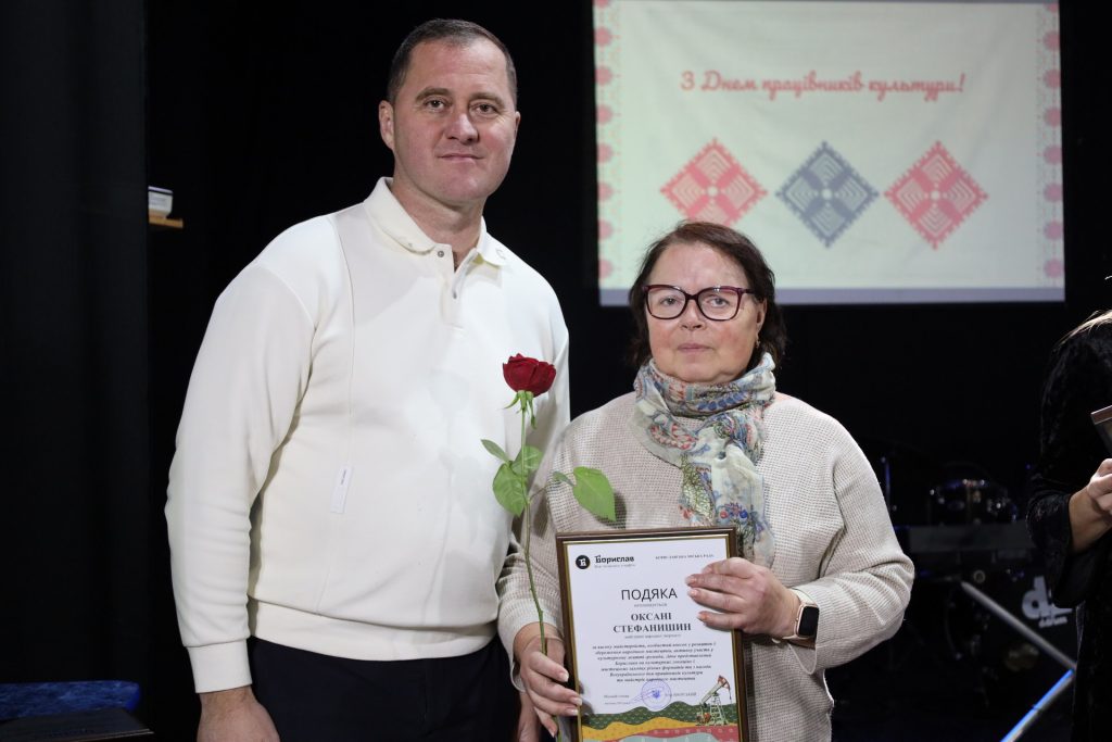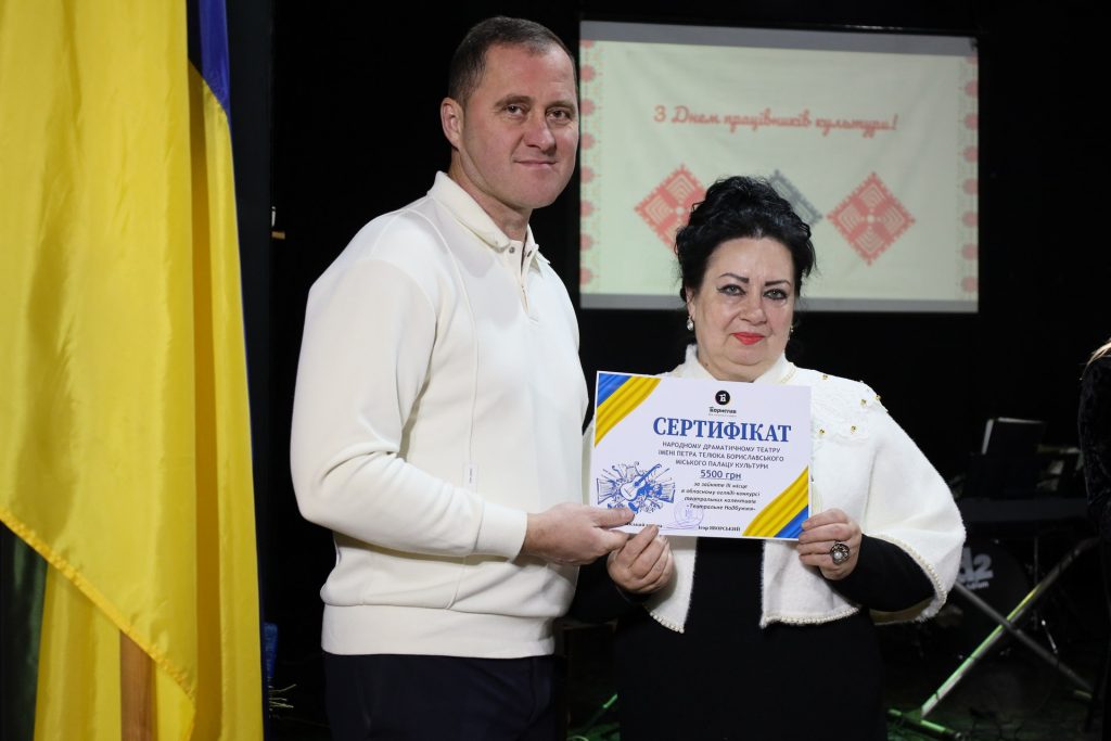 Також Ігор Яворський подякував працівникам культури за те, що вони дарують надію та віру, підтримують моральний дух наших воїнів і примножують свій талант на благо громади, вручив грошові сертифікати переможцям обласних та регіональних конкурсів, а також подяки Бориславської міської ради працівникам установ культури та майстрам народного мистецтва, які відзначилися професійними здобутками та творчими успіхами упродовж року.